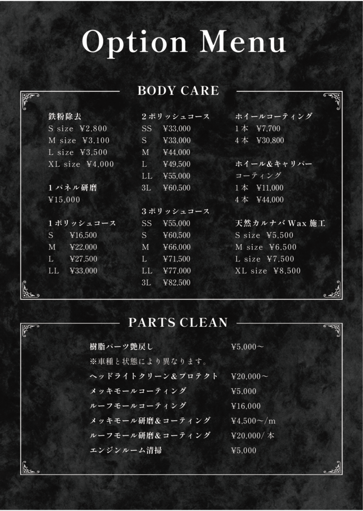 | S サイズ | 75,400 円~ | 94,200 円~ | 942,500 円~ |